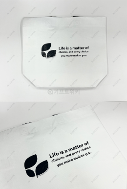 생활방수등 오염에 강하고 내구성이 좋은 리유저블 가방입니다. 데일리로 사용하기 좋은 440*360*150mm 사이즈이며 실크인쇄 1도를 진행하였습니다.