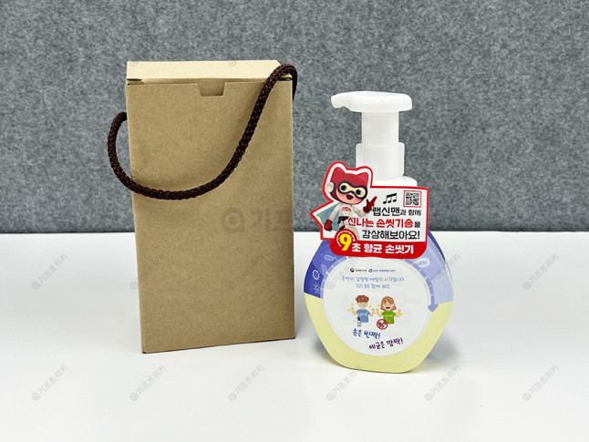 랩신 핸드워시에 홍보하시고 싶으신 내용을 스티커부착으로 진행하였습니다. 또한 간편한 선물이나 판촉용으로 활용할 수 있도록 종이케이스까지 추가하였습니다.