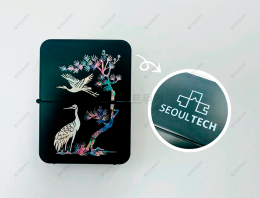 고급스러운 패키징과 활용도 높은 제품으로 선물용으로 인기가 높은 나전칠기 무선충전기입니다. 제품 뒷면에 실크인쇄가 가능해 홍보문구나 회사로고를 넣기에도 좋습니다.