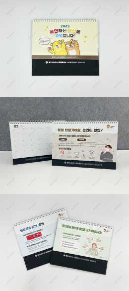 독판으로 주문제작 되는 달력상품으로 앞뒤 원하는 내용으로 구성이 가능하며 달력부분에도 중요한 기념일을 추가 하여 인쇄가 가능한 장점 이있습니다. 이번에는 하단 종이를 짧게 제작 진…