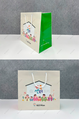 원하는 내용으로 4면 전부 컬러인쇄 진행 가능 한 종이쇼핑백입니다. 인쇄내용이 많고 여러 컬러를 사용하여 예쁘게 제작 하고싶은 고객님들께 딱 맞는 상품이며 이번 고객님께서는 비슷하…