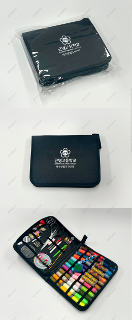 여러 색상의 실과 다양한 구성품으로 알찬 반짇고리 제품입니다! 외부에는 실크 인쇄를 진행하였으며 OPP 포장 후 최종 출고 진행 하였습니다.