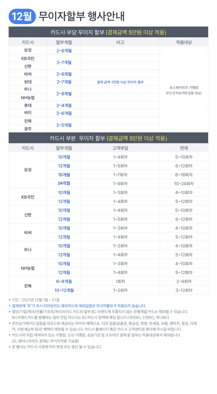 12월 무이자 할부 행사안내
