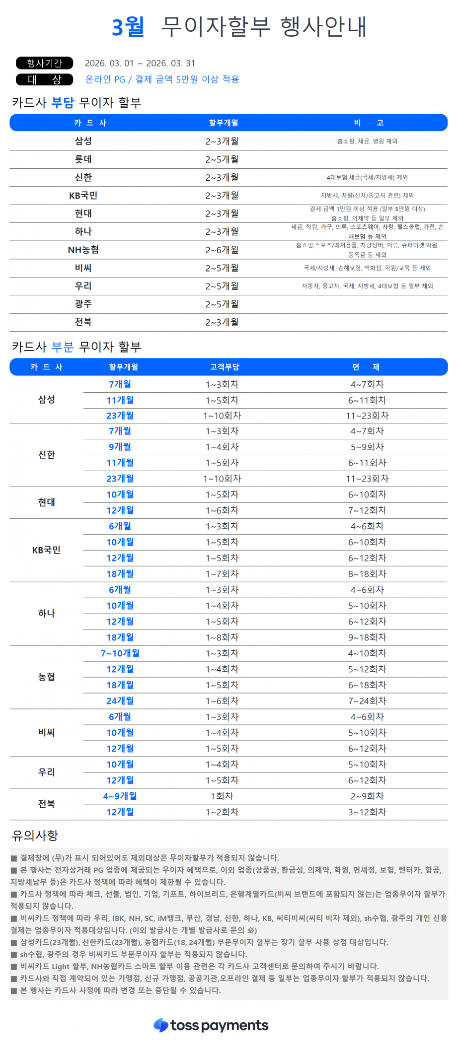 3월 무이자 할부 행사안내