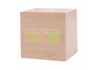 우드타입 LED 탁상용 미니시계 (연두) / 정사각 / 알람