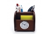 EM5003 4단 원목 사무실 시계 회전 펜꽂이 연필꽂이 정리함