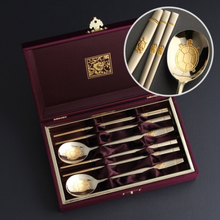 수저/젓가락 입/손잡이 부분의 거북이문양은 24K 골드를 증착시켜 식사時 금을 섭취하는
