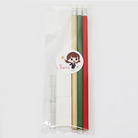 • 인컬러 문구세트 OPP 4, 연필, 지우개, 연필 캡 (+0원)
