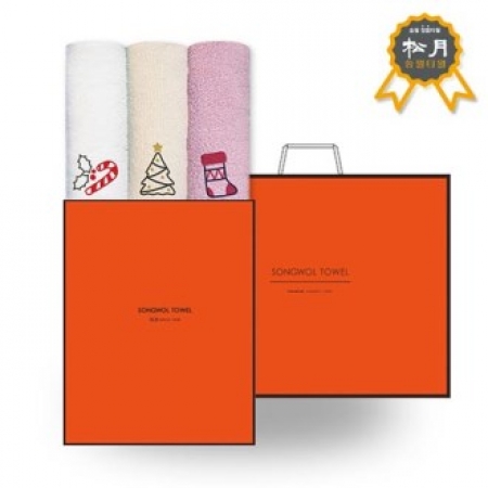 • 모델명 송월 크리스마스 수건 OG세트 봉쥬르 3매+케이스+쇼핑백