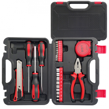 • 구성 9p(커터칼, 드라이버2P(+,-), 라쳇핸들, 복스알9p(5~13), 드라이버비트10P, 펜치, 줄자3M, 케이스)