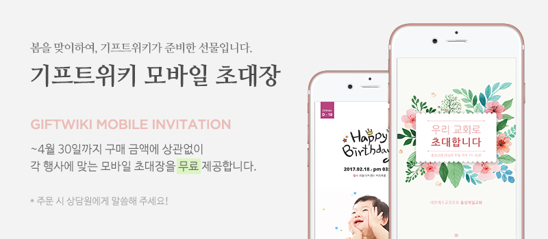 • 인쇄에 필요한 자료는 웹하드(ID : giftwiki / PW : 15228992) 또는 이메일(cs@giftwiki.kr)로 보내주시면 됩니다.