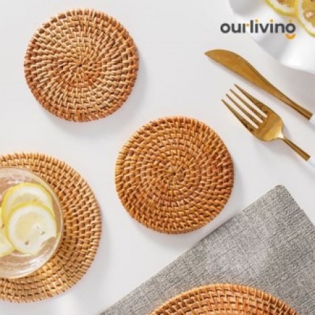 G205012 라탄 컵받침 티코스터 홈카페 매직 홀더 10cm