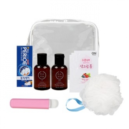 • 구성 파우치, 치약, 칫솔, 샴푸, 바디워시, 일회용폼클랜징, 샤워볼