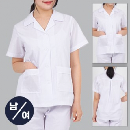 남자 여자 단체 깔끔한 백색 위생복 반팔 상의 #2남자 여자 단체 깔끔한 백색 위생복 반팔 상의 #3
