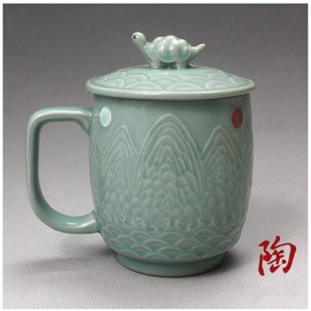 G222950 청자 양각 일월 오봉 거북뚜껑 머그 세트