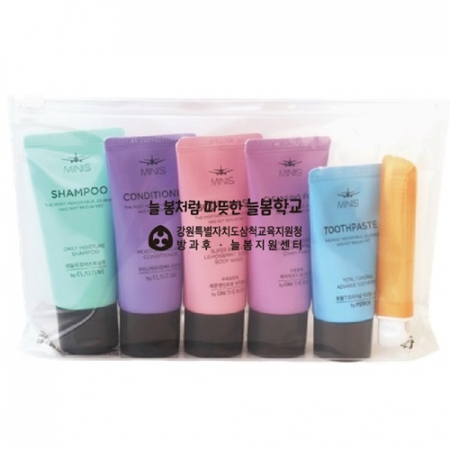 • 구성 샴푸,컨티셔너,폼클렌징,바디워시,치약,칫솔,파우치