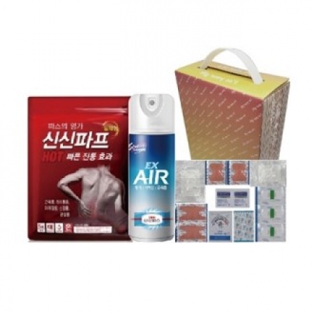 • 구성 신신파프5매일체형 1팩(쿨또는핫 선택1), 신신스프레이에어파스200ml 1개, 구급키트8종(14pcs)1개,손잡이케이스