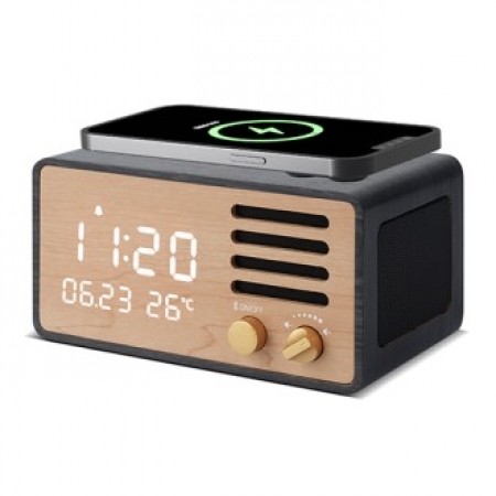 G226205 우드쇼 Y129 블루투스 스피커 15W 고속 무선충전시계_블랙우드