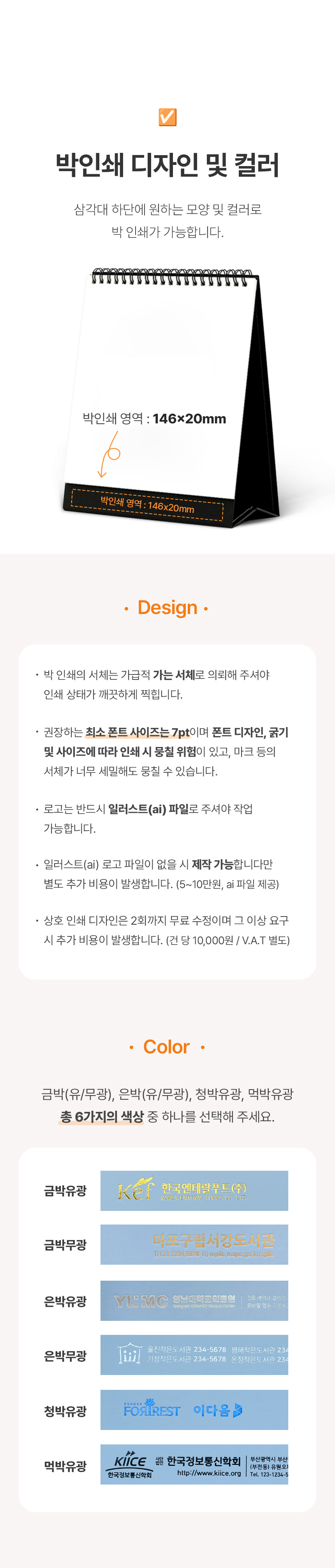• 부채, 전단지 등 디자인 비용이 많이 발생하는 일부제품에 대해서는 디자인비(시안제작비)가 추가될 수 있습니다.