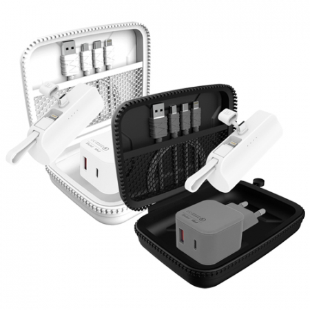 멀티 충전용 고속 케이블과 여행용 파우치, 도킹형 보조배터리 구성으로 답례품 및 선물용으로 사용하기 좋은 아이템입니다.