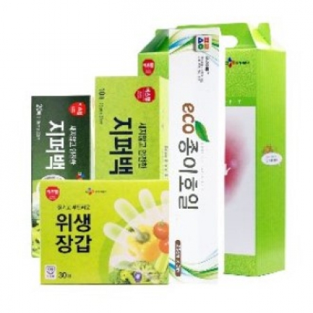 CJ이츠웰 위생백(대),지퍼백(대),롤백(대),종이수세미5매 4종세트
