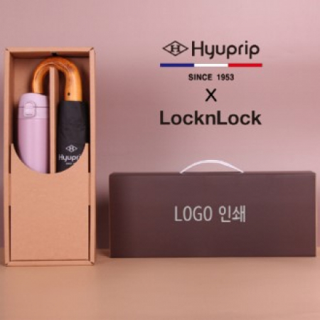 G240202 협립 슈퍼 암막 고밀도 원목곡자 3단 완전자동 우산/양산+락앤락 슬림핏원터치 400ml 텀블러세트