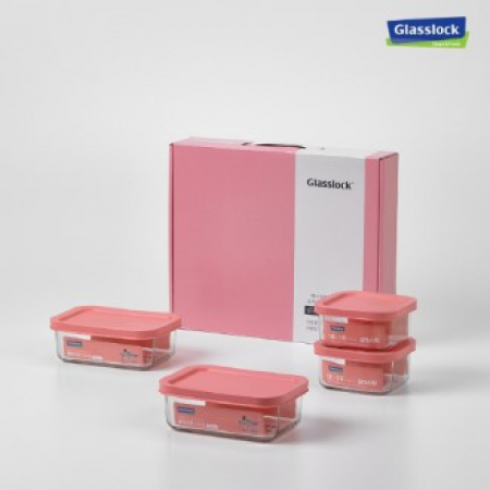 G244265 글라스락 간편 캡 4조 밀폐용기핑크