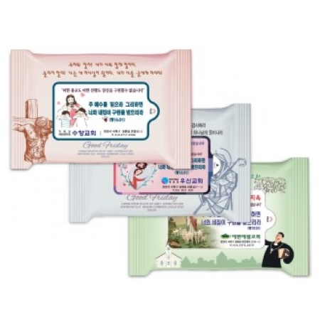 G245079 교회 전도용 3종 랜덤무광 10매 물티슈 HO