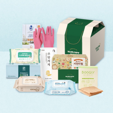 • 구성 미용티슈200개1개,키친타월70매1개,생분해물티슈72매1개,물청소포 30매1개, 주방행주티슈70매1개, 거품나는수세미25매1개, 고무장갑1개, 위생백50매1개, 주방세제300g1개