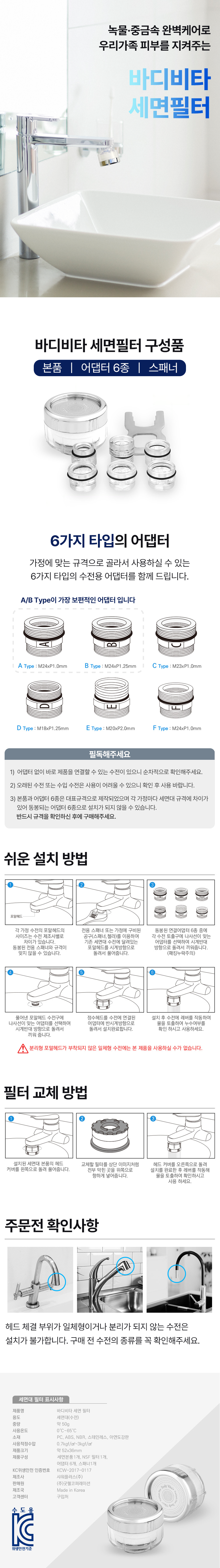 바디비타 세면대 필터 1년 세트 요약정보 및 구매