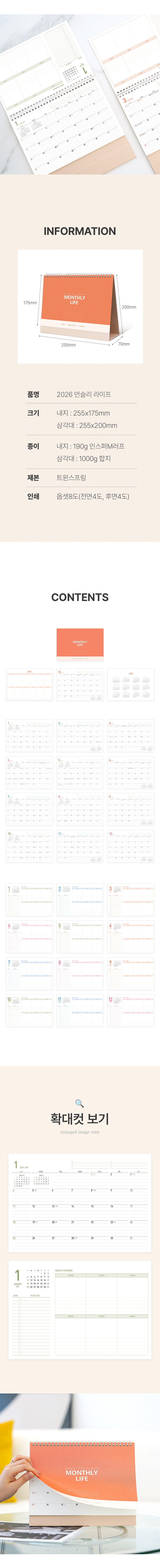 • 모델명 탁상달력 먼슬리라이프 255x200 캘린더