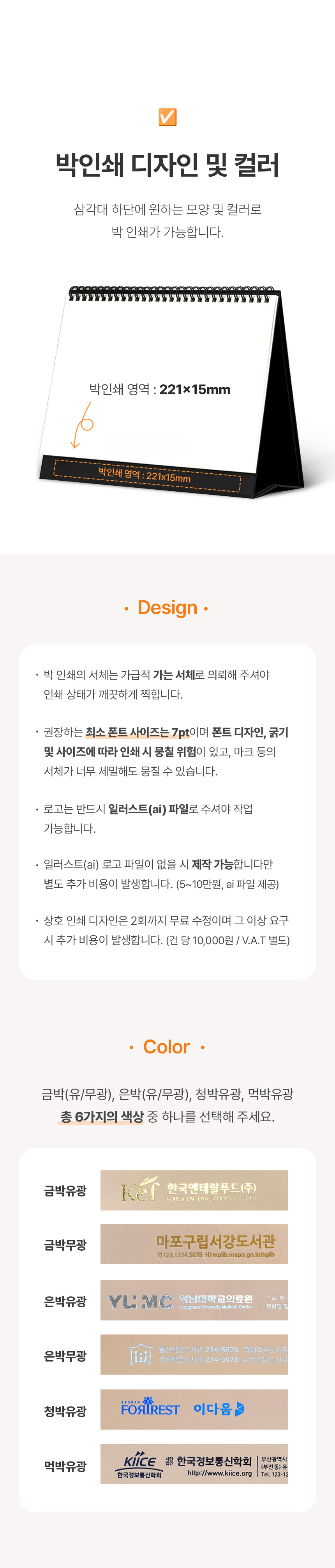 • 부채, 전단지 등 디자인 비용이 많이 발생하는 일부제품에 대해서는 디자인비(시안제작비)가 추가될 수 있습니다.