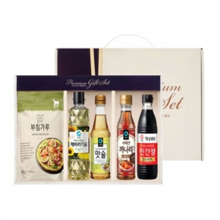 • 구성 곰표 부침가루500g 1개, 청정원 해바라기유 500ml 1개, 청정원 맛술 410ml 1개, 청정원 까나리액젓 500g 1개, 청정원 햇살담은 진간장 500ml 1개