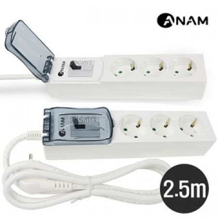 아남 고용량 4000W 배선차단기 3구 멀티탭 2.5m, 국산 과부하차단기