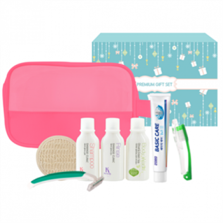 케라시스 샴푸 50g x 1, 케라시스 린스 50g x 1, 샤워메이트 샤워 50g x 1, 2080 베이직 케어 치약 50g x 1, 미세모 접이식칫솔 x 1, 샤워퍼프 x 1, 면도기 x 1