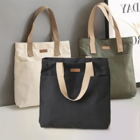 • 인조 가죽 패치 캔버스 지퍼 토트백 (+0원)
