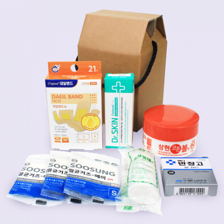 • 구성 구급상자 대일밴드 혼합 21매+닥터스킨 연고+ 알콜 코튼볼+멸균가제3매+붕댜+면반창고+끈케이스