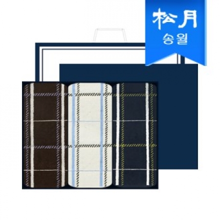 • [송월타월] 카운테스마라 체크 200g 세면타올 3매 선물세트 쇼핑백 기념수건 답례품 (+0원)