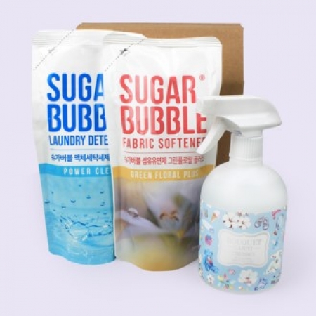 • 구성 부케가르니 섬유탈취제 500ml+ 슈가버블 세탁세제 리필 +슈가버블 섬유유연제 리필 + 끈케이스