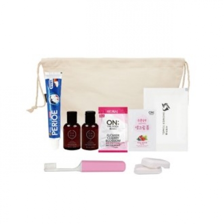 • 구성 파우치,치약,칫솔,샴푸,린스,일회용바디워시,일회용폼클렌징,샤워타올,비누