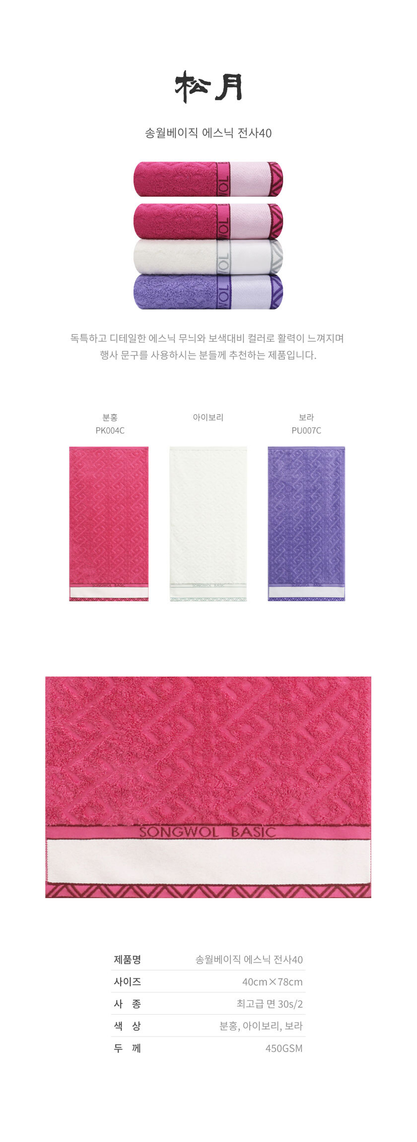 [송월타올] 송월 에스닉 전사타올40 140g 요약정보 및 구매