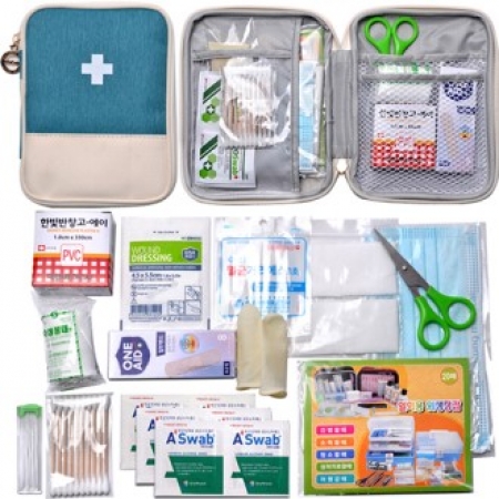 • 구성 구급함,반창고,면반창고,밴드,마스크,알콜솜,드레싱밴드,멸균거즈,붕대,가위,면봉
