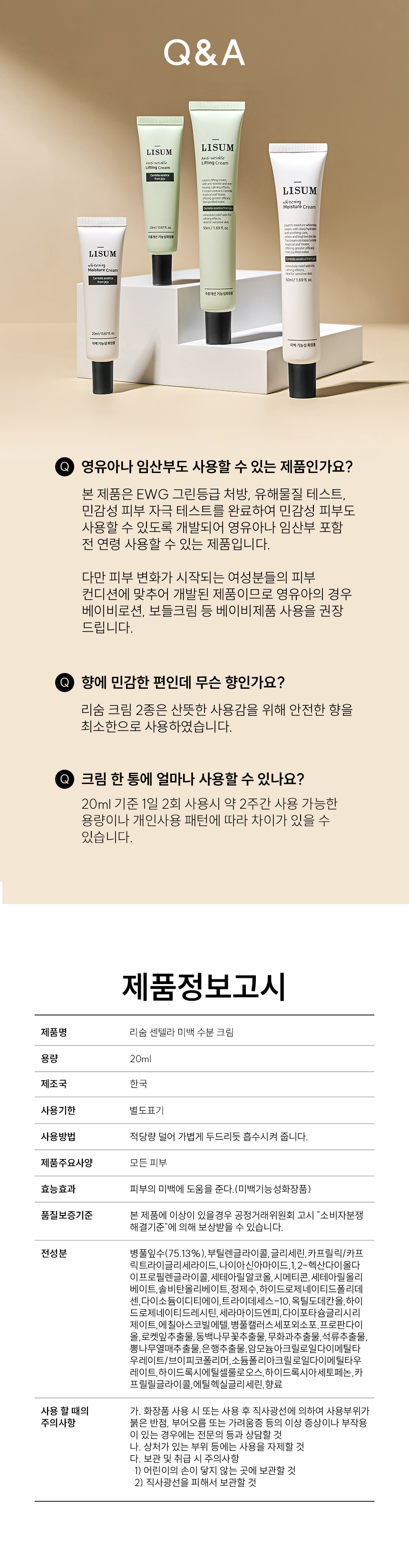 • 모델명 리숨 센텔라 수분 미백 크림 20ml