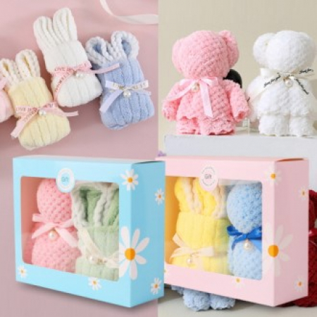 G279659 핸드메이드 캐릭터 타월 행주 베어 레빗 2p 세트 (케이스포함)