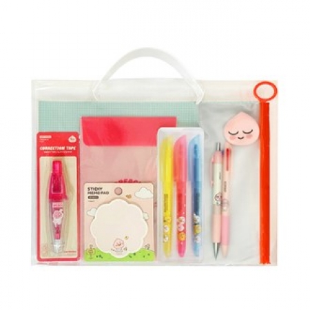 • 구성 스프링 연습장, 형광펜3P, 지우개세트B(3색볼펜, 샤프, 지우개), 수정테이프, 점착메모지, 미니 봉투파일, 가방형 케이스