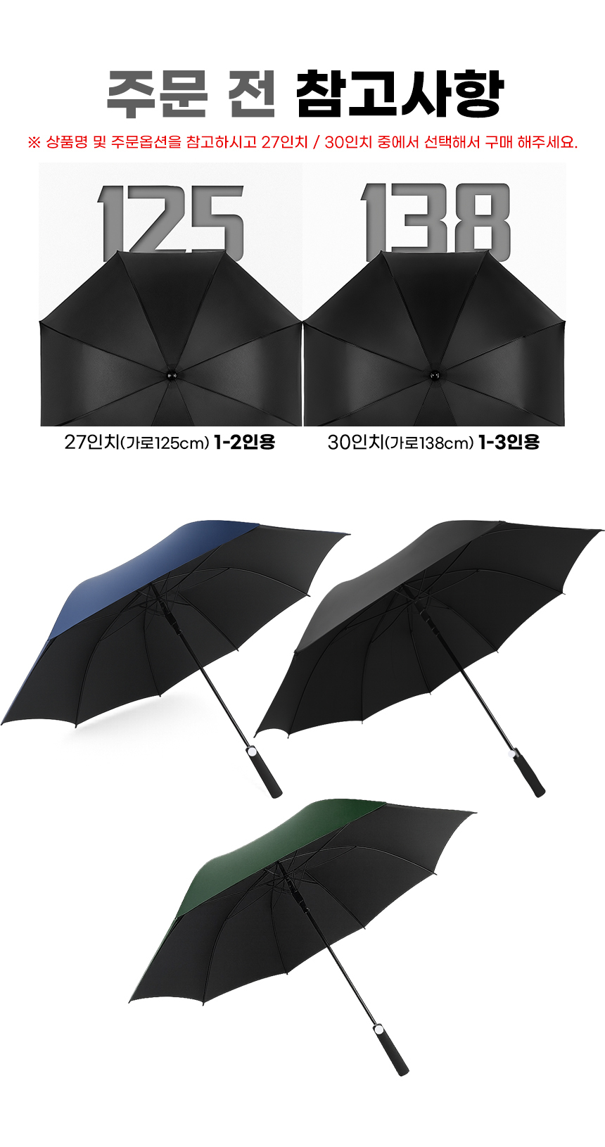 • 27인치 자외선차단 빅사이즈 암막 장우산 양우산 우양산 대형우산 골프우산 (+0원)