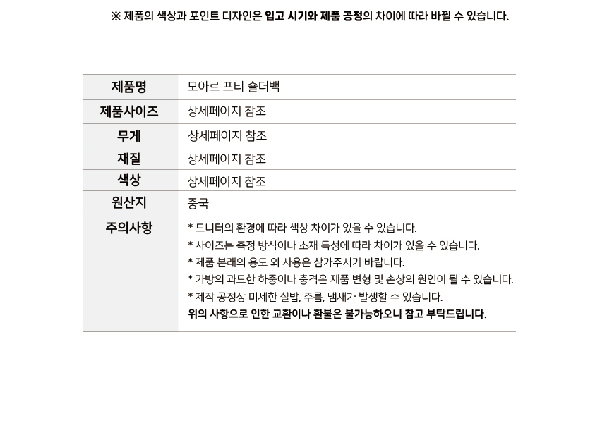 • 제품의 색상 및 인쇄색상은 PC화면상의 색상과 다소 차이가 날 수 있습니다.