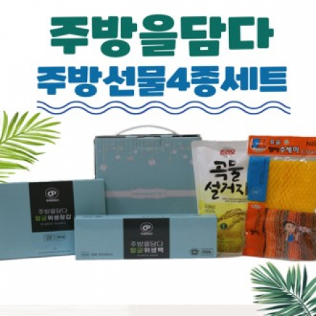 주방세트 4종세트 일회용비닐 장갑 수세미 세제 세트 #2