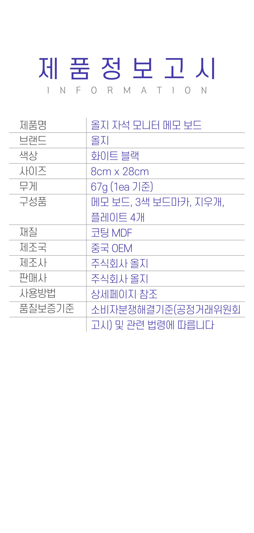 • 올지 자석 모니터 메모보드 좌우 2P 풀세트 메모판 컴퓨터 냉장고 (+0원)