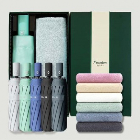 G288610 원터치 12k 더블살대 3단암막양우산+송월타올라이트무지130g 우산타올 선물세트